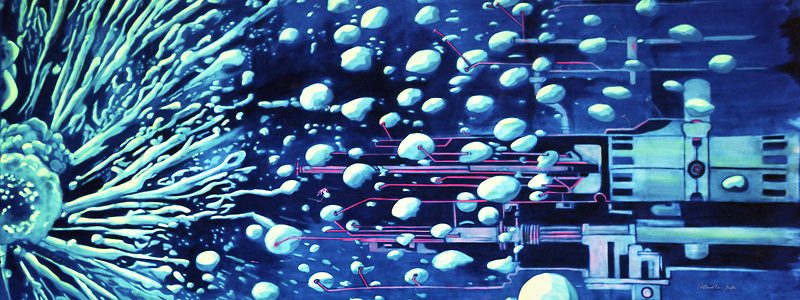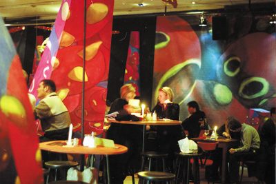 In den 90er Jahren haben wir 2 mal die Wände im Omen in Frankfurt a.M. gestaltet. 1993 mit der Bilderserie Shivas Dance und 1997 mit Bionic Booster.